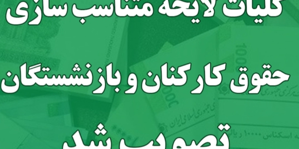 کلیات لایحه دوفوریتی متناسب سازی حقوق کارکنان دولت و بازنشستگان کشوری و لشگری به تصویب نمایندگان مجلس شورای اسلامی رسید. در نشست علنی یکشنبه ۲۴ مهر ماه- مجلس شورای اسلامی، گزارش کمسیون برنامه و بودجه و محاسبات مجلس در مورد لایحه دوفوریتی متناسب سازی ...